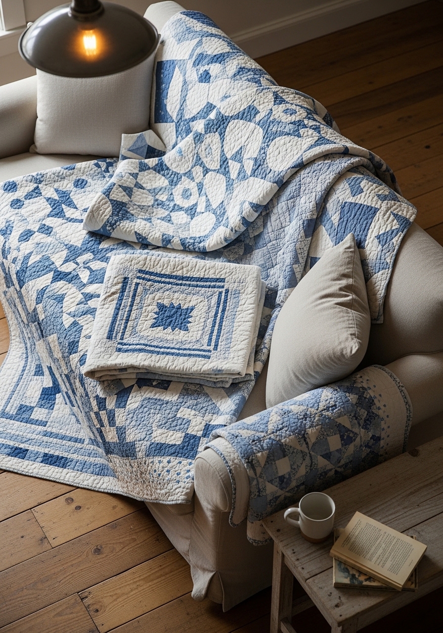 Layer old quilts over your couch for instant texture and color pops on a budget. Hunt them at flea markets – I scored a stack for under twenty dollars once, and they hide stains like pros. It gives that heirloom feel, perfect for snuggling during family game nights, even if one has a tiny rip from overuse.