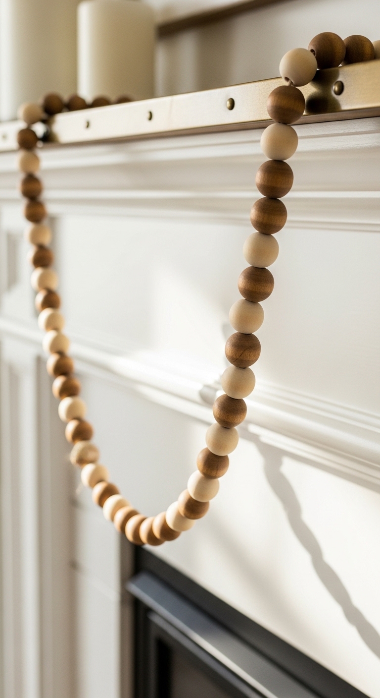 Why not string up some wooden beads from craft store leftovers for a textured garland that adds that boho-farmhouse edge? It’s so easy to DIY on a lazy afternoon, and you can customize the length to fit your space perfectly. I made one last month, and it ties everything together without looking too matchy-matchy.