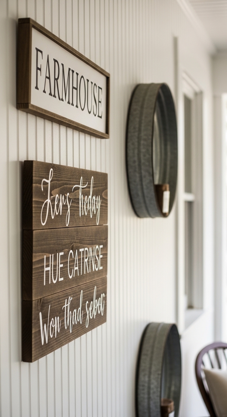 Grouping vintage-inspired signs on your porch wall adds personality and that cozy storytelling element. I hung a few I found at a flea market, and they spark conversations every time – like little pieces of history. It’s a simple way to personalize without overwhelming the space.