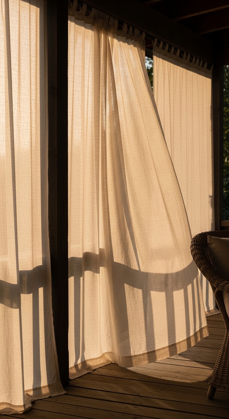 Draping lightweight curtains around your porch creates privacy and a soft, billowy coziness. I installed some on mine, and they flutter beautifully in the wind – like a cozy outdoor room. It’s an affordable way to elevate the aesthetic without much fuss.