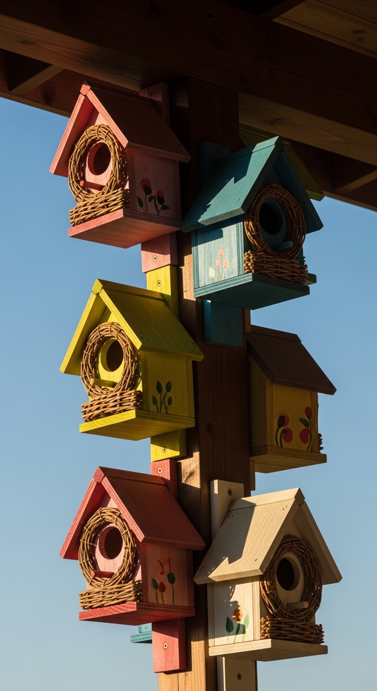 Clustering birdhouses on your porch invites nature and a cozy, whimsical vibe. I hung a few, and now birds visit daily – it’s like a living decor piece. Choose varied shapes for visual interest.