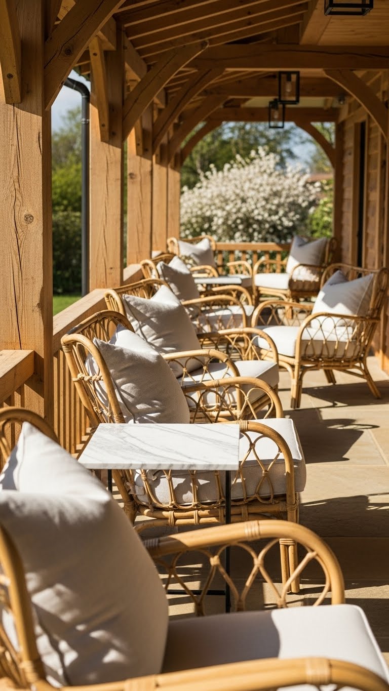 Rattan furniture gets a modern update with paint and cushions. Buy spray paint for $5. Apply it to clean surfaces. Add affordable cushions on top. A tip: Choose colors that match your scheme. This revives old items fast. DIY project: Sew covers from cheap fabric. These updates make everything fresh. Start with one piece. Your porch will look new.