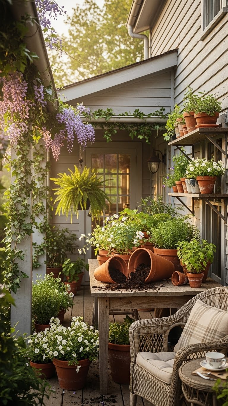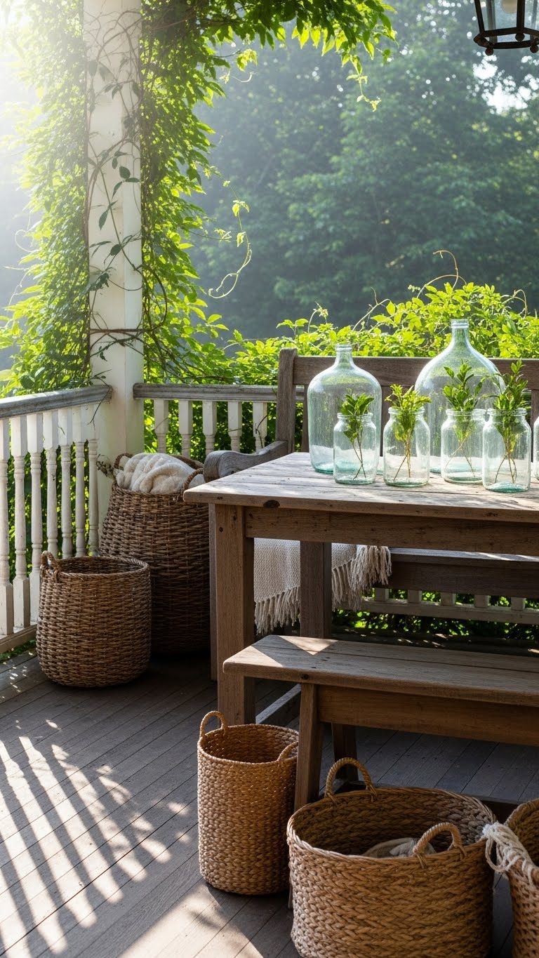 Upcycled pieces give your porch a personal, green touch. Hunt for items at thrift stores or garage sales for under $30 total. Turn an old ladder into a plant stand or use jars as hanging pots. Begin by cleaning and painting what you find. Add authentic flair: Mix in family heirlooms like a wooden crate for storage. A budget-friendly idea: Paint thrift store finds in earthy tones to match. This shifts away from store-bought stuff, making your space unique. Try this DIY: Attach rope to a vintage bucket for a swing planter. These choices last longer and cost less. Focus on what you have at home first. Your porch will reflect your style without waste.