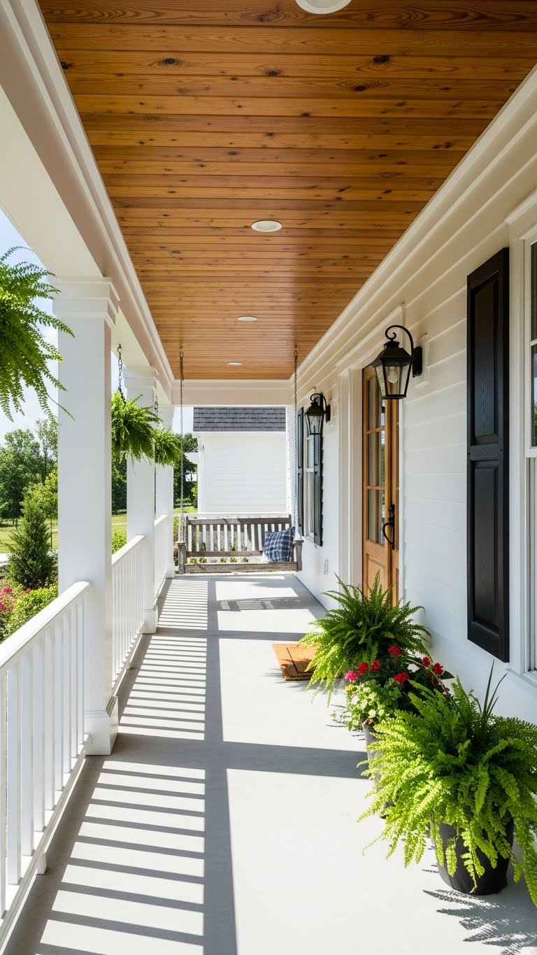 Haint blue ceilings offer a Southern twist. Get blue paint for under $15. Roll it on the porch ceiling. It pairs with white walls nicely. A simple tip: Use a drop cloth for clean-up. This adds a cool shade effect. DIY idea: Blend it with existing colors. The blue deters bugs too. Your porch will have that special touch.