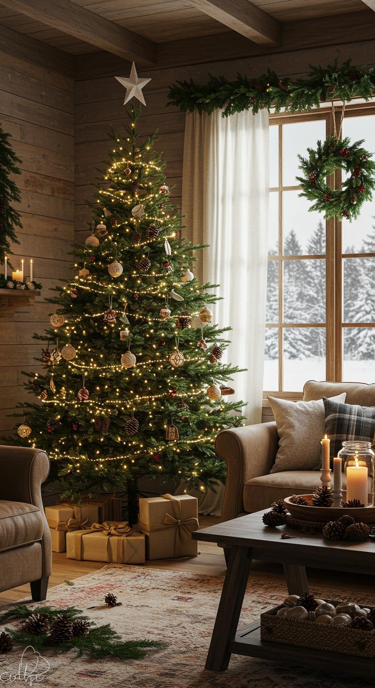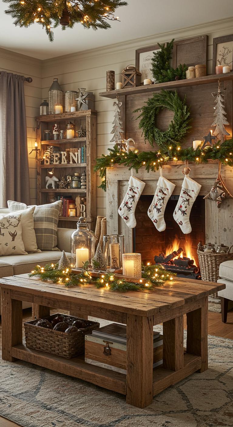 Enhance your space with rustic wood accents—think wreaths, garlands, or handcrafted ornaments.