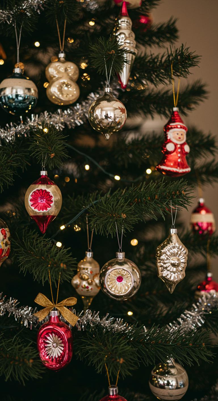 Delicate vintage glass baubles catch the light, while handmade crafts showcase the warmth of tradition.