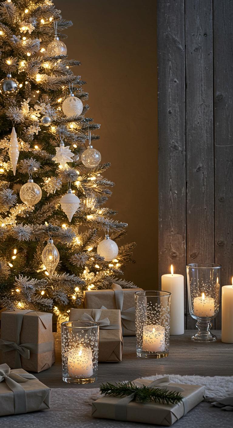 Picture delicate frosted ornaments hanging from your tree, shimmering softly in the light. Pair them with elegant glass candleholders, casting a magical glow throughout your space.