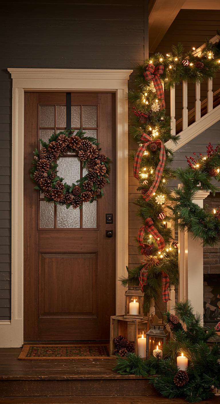 Adorn your front door with a stunning pine cone wreath, inviting warmth and nature inside. Drape evergreen garlands along mantels and staircases, bringing life and fragrance to your space.