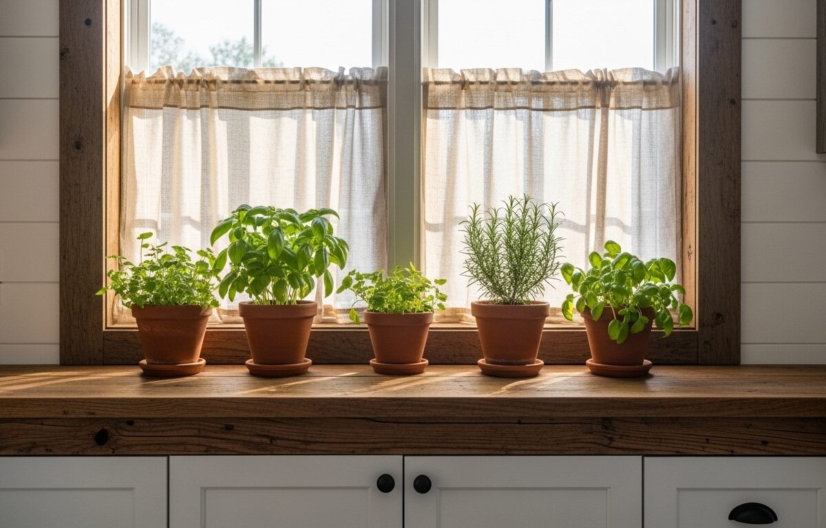 Installing small ledges for an herb garden right on the window keeps fresh flavors at hand. The scents make the kitchen feel alive and inviting. You can harvest right there while cooking dinner.