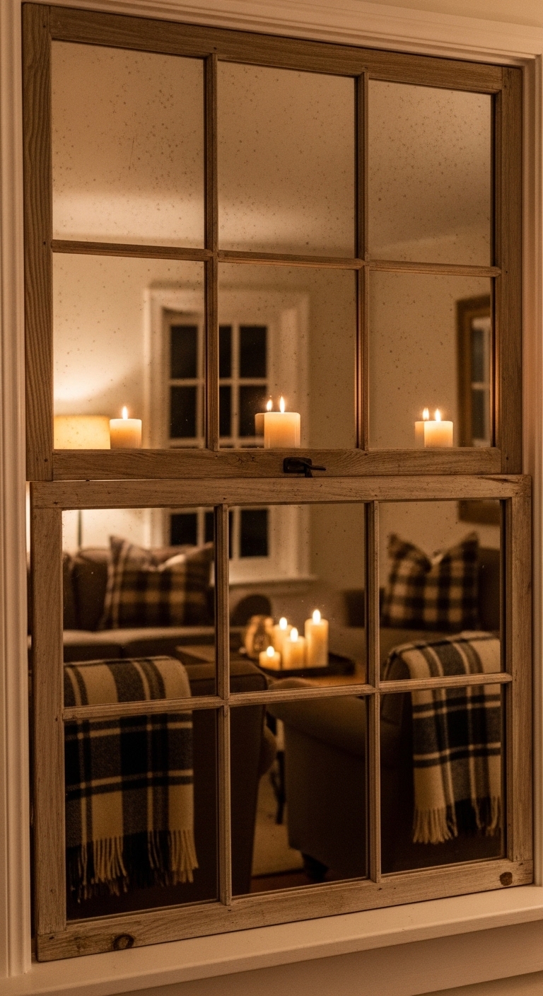 Turning an old window into a shelf for plants and candles is such a clever way to bring in that farmhouse charm. It feels so organic, like the greenery is spilling right into the room. You could easily DIY this with thrift store finds for a budget-friendly cozy boost.