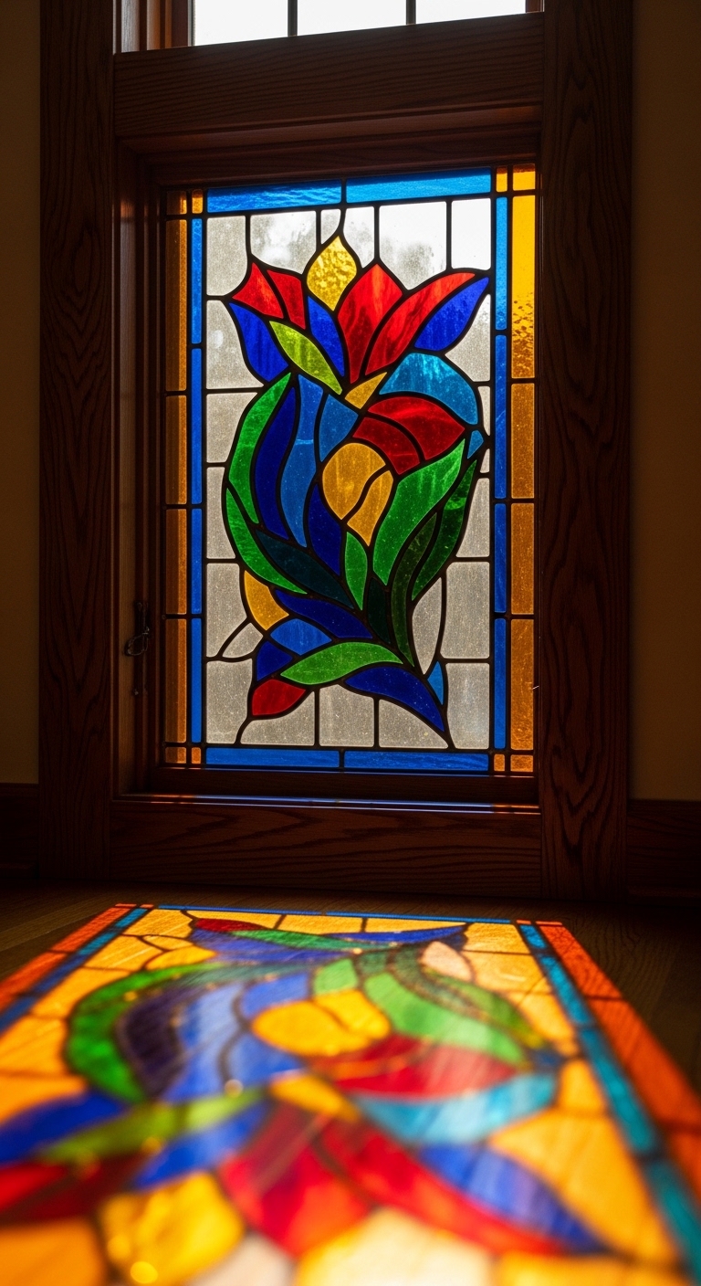 Adding stained glass inserts to windows brings artistic color play into the room. The patterns dance with sunlight for a magical cozy effect. It’s a subtle upgrade that feels timeless in a farmhouse setting.