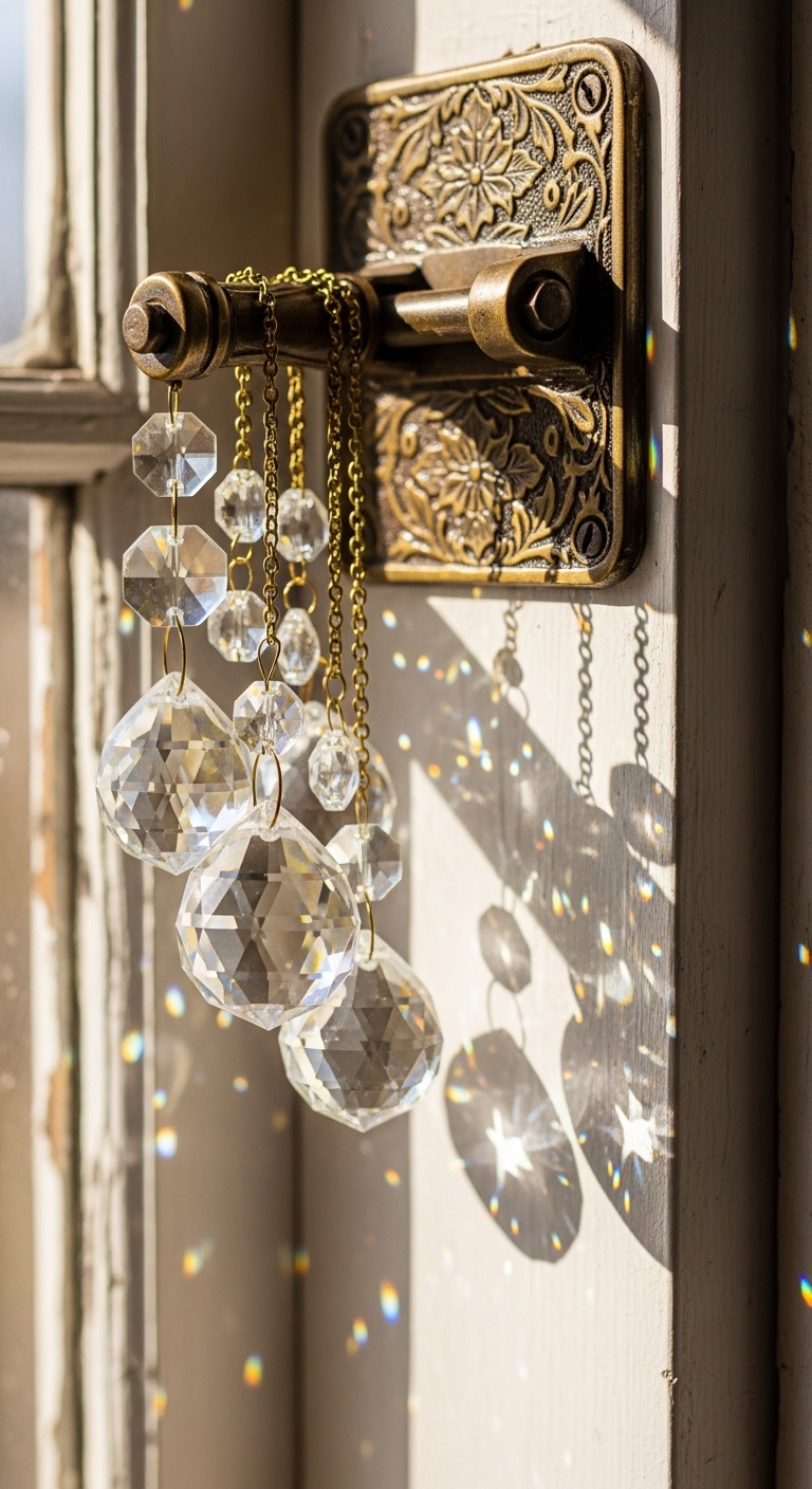Suncatchers dangling from the window catch rays and create rainbows throughout the space. They add a whimsical, light-filled coziness. Hang a few at different heights for maximum effect.