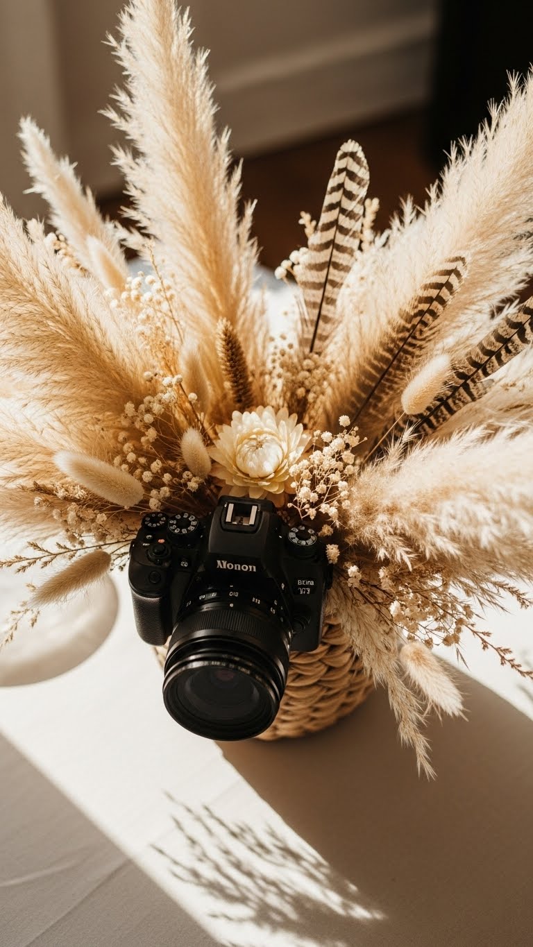 Pick pampas grass for that airy feel. Add dried blooms and a feather or two. Use a rattan basket from home. Layer textures for depth. This works for casual events. Source items from craft stores. Mix in seasonal tulips for color. Keep it simple to stay cheap. Try weaving in some grass yourself. Place it in the middle of your table. Guests will love the vibe. Do this in minutes for a relaxed look.