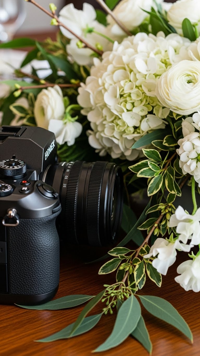 Let white flowers trail. Use a tall base. This adds drama. Pick affordable whites.