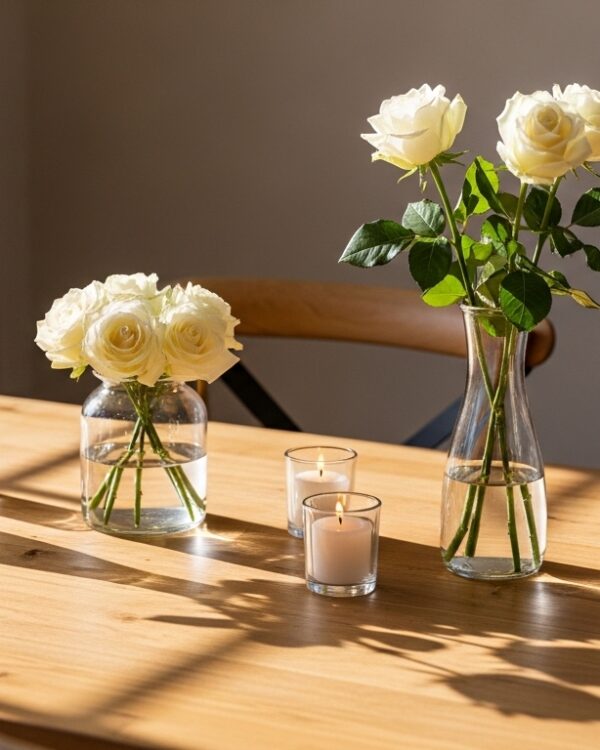 Go for all-blush flowers like peonies. Pick a few roses to mix in. Vary the shapes for interest. Use a plain vase you already own. This keeps things elegant and easy. Shop for sales on seasonal picks. Arrange them in a tight bunch. Add baby’s breath to fill gaps without spending much. Set it low on your table. It creates a soft focus. Build this at home for quick results. Everyone notices the charm.