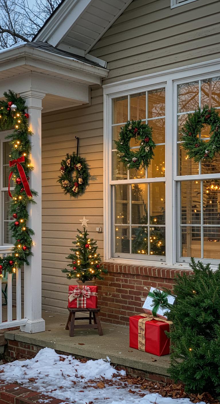 You’ll create a porch that feels like a warm invitation the moment guests arrive, using simple touches that look far more polished than they cost. Think classic wreaths, twinkle‑lit railings, lanterns on the steps and a pair of potted mini trees to frame the door. I’ll walk you through ideas that mix tradition with a few unexpected focal points so your entryway really stands out—and you’ll want to try several of them.
