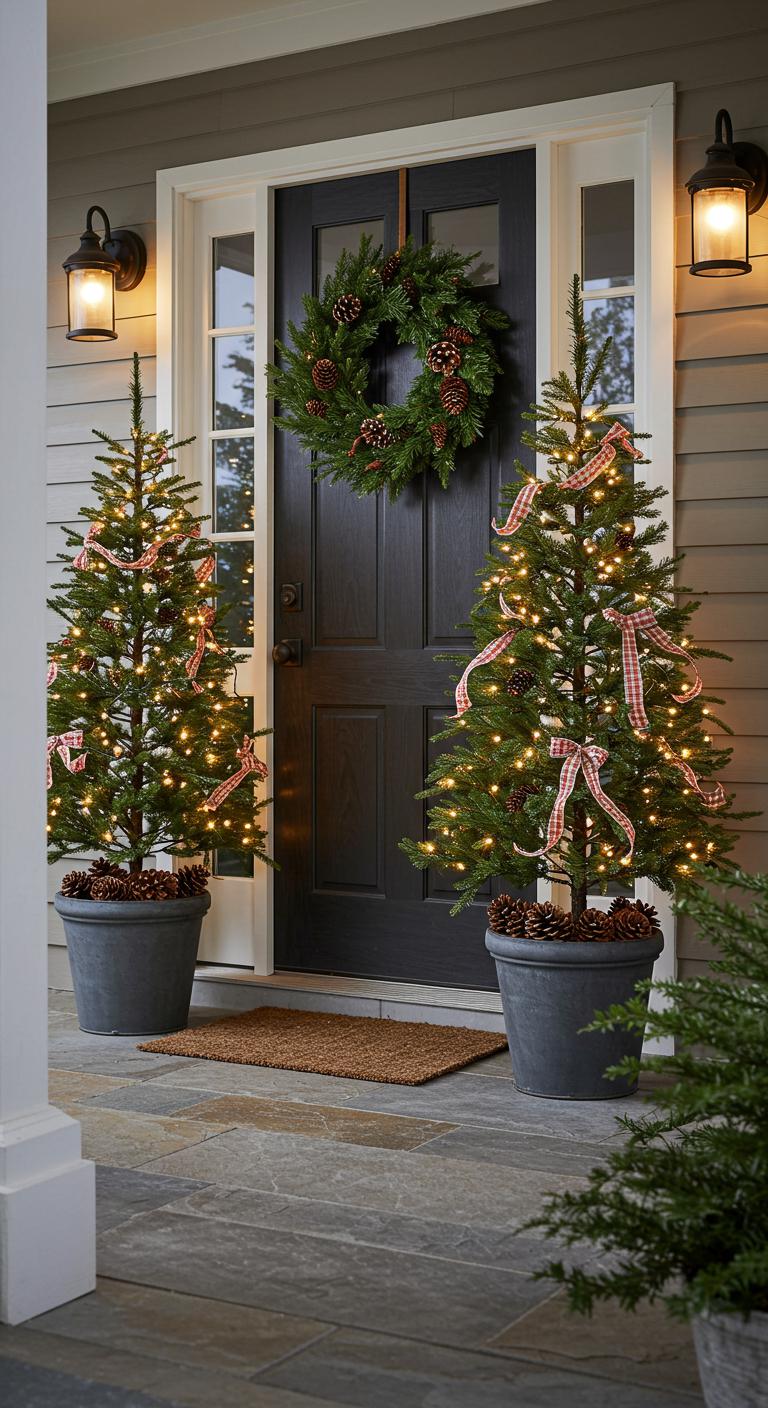 When you place matching potted mini Christmas trees on either side of your entryway, they frame the door with evergreen charm and instant holiday symmetry.