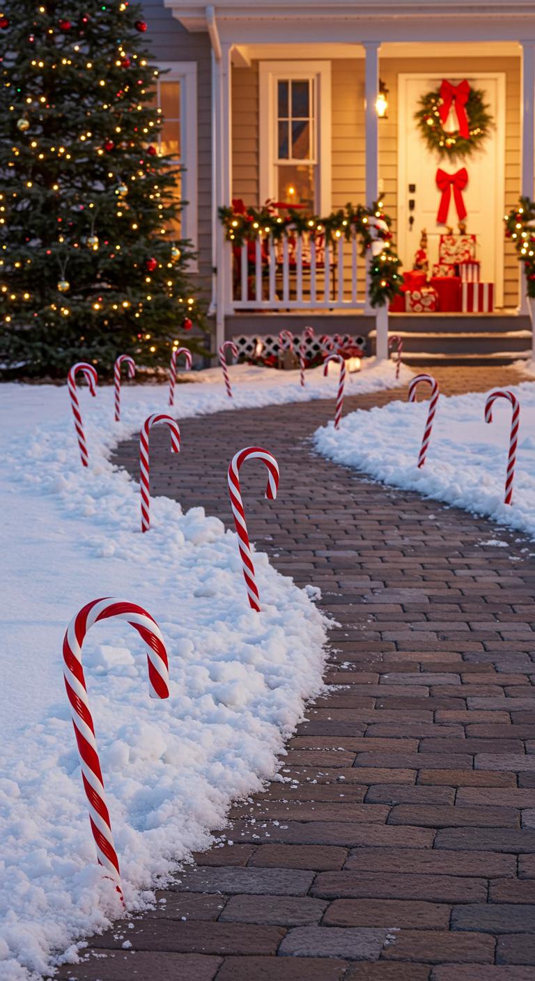 You can place them any way that suits your entry. You’ll choose candy cane colors to match your porch palette, stake them along curves for rhythm, and mix heights for movement.
