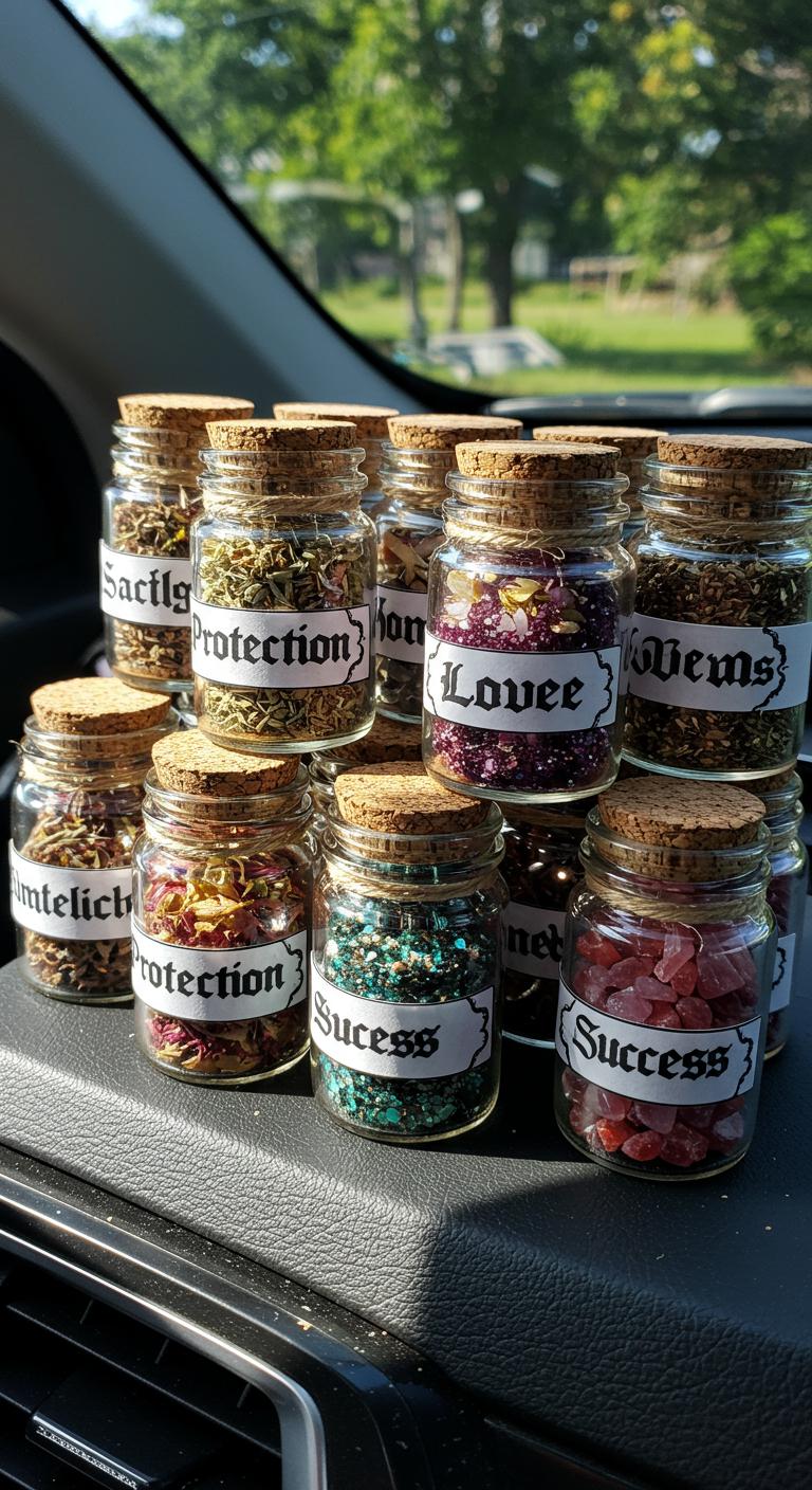 Create your own spell jars to keep positive energy flowing in your vehicle. These jars can be filled with herbs, stones, or even glitter that symbolizes your intentions. Small glass jars are easy to find and inexpensive. Start by gathering your ingredients. For example, combine rosemary for protection, cinnamon for prosperity, and rose petals for love. Label them creatively to personalize your jars even further! Place them on your dashboard or in the cup holder. They look appealing and serve as a reminder of your intentions during your travels.