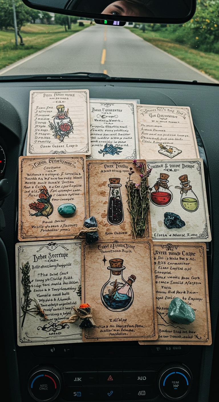 Embrace creativity with potion recipe cards displayed in your car. You can design these cards on colorful paper or print them. Include recipes for simple herbal teas or spirit-enhancing drinks. Make it a fun family project to come up with recipes themed around your family’s beliefs! You might even encounter spontaneous moments where you want to experience your own brew while traveling. Display these cards on your dashboard or keep a small folder in the glove box for easy access.