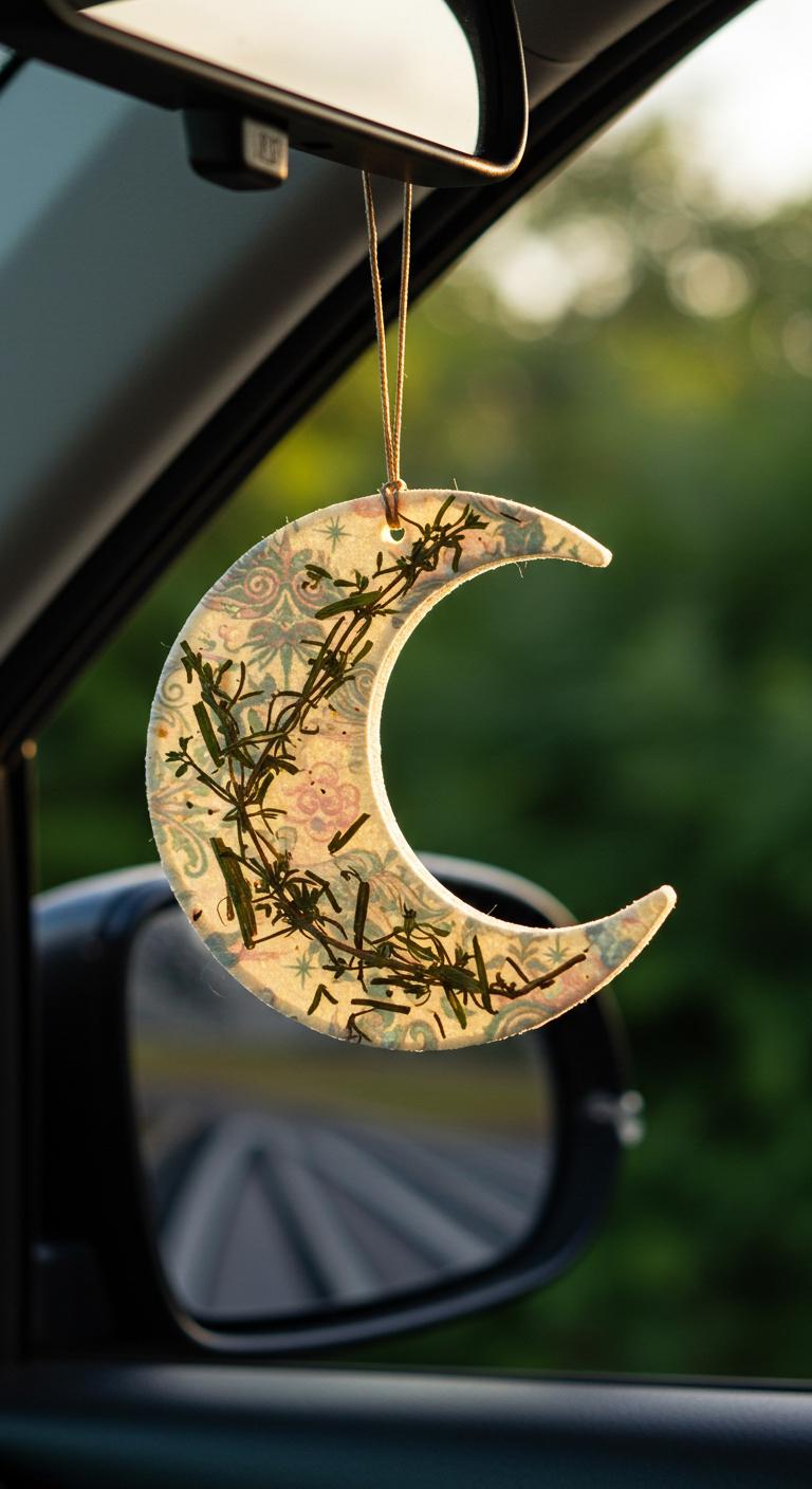 Why not blend scents and witchy themes with enchanted air fresheners? Look for air fresheners shaped like stars, moons, or even magical creatures. Essential oils can also be used for a more natural option. Simply place a few drops of your favorite essential oil on a cotton ball and hang it from your rearview mirror, secured with twine. For a more DIY approach, combine natural herbs, like lavender for calming or cinnamon for warmth, and seal them in a small fabric sachet. Enjoy delightful scents as you embark on your journeys.