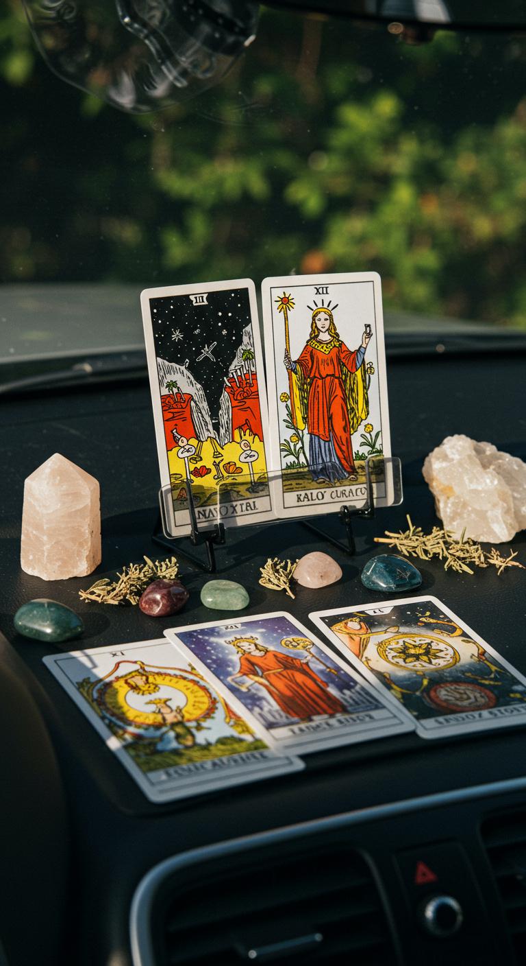 Keep a travel-sized tarot deck in your car to explore your intuition on-the-go. A compact deck fits perfectly in glove compartments or center consoles. Select a deck that resonates with you, and consider adding a small instruction booklet if you need reminders. You can pull a card during travel breaks to reflect on your journey or set intentions. Doing so can create magical connections while traveling. This practice invites insight each time you hit the road!
