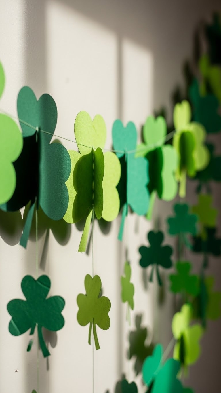 Grab some green paper and string for this quick project. Cut out shamrock shapes in minutes. Hang them on walls or doors. It takes less than 10 minutes. Use scraps from old magazines to save money. Tie them with twine you already have. This adds a fun pop to any room. Place them over a fireplace for extra appeal. Friends will notice the effort. Try different sizes for variety. Add glitter if you want sparkle. Keep costs under $5. Follow a simple tutorial online. You’ll feel proud of your creation. These garlands work for spring too. Set them up in a bedroom or living area. Enjoy the easy setup. Make it a family activity. Watch how it brightens the space.