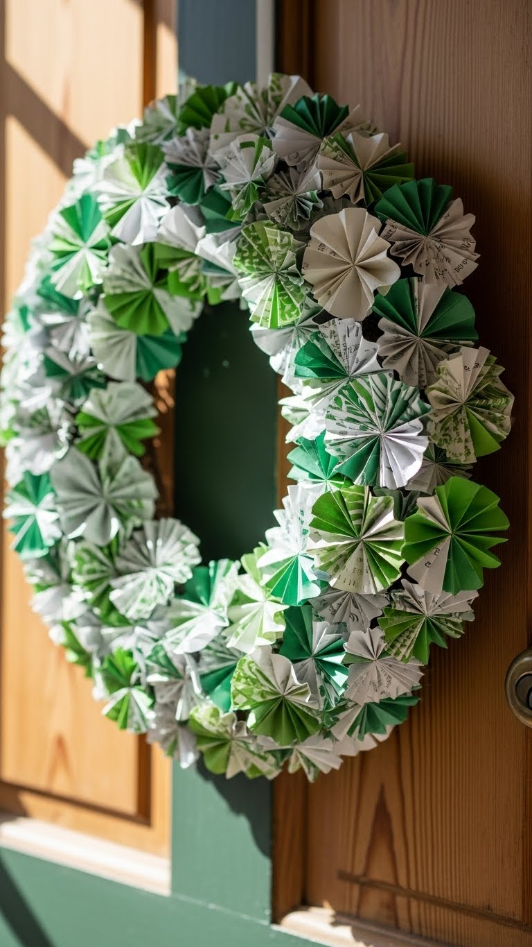 Cut shamrocks from old paper. Glue them into a wreath. Hang on doors for decor. This uses what you have. No new materials needed. Make it in 15 minutes. Position on entryways. No glue gun required if you use tape. Add to your home entrance. Guests will see the effort. Try for eco-friendly fun.