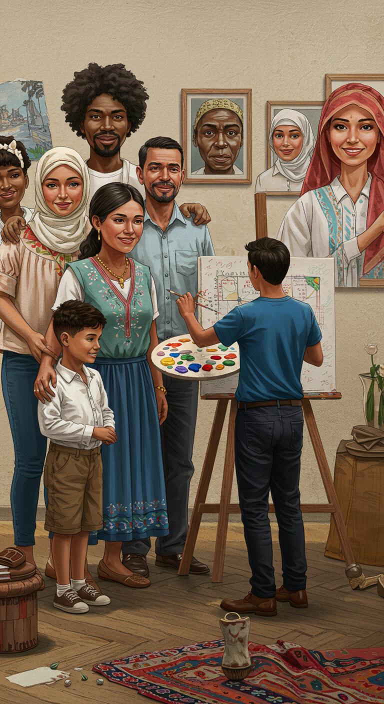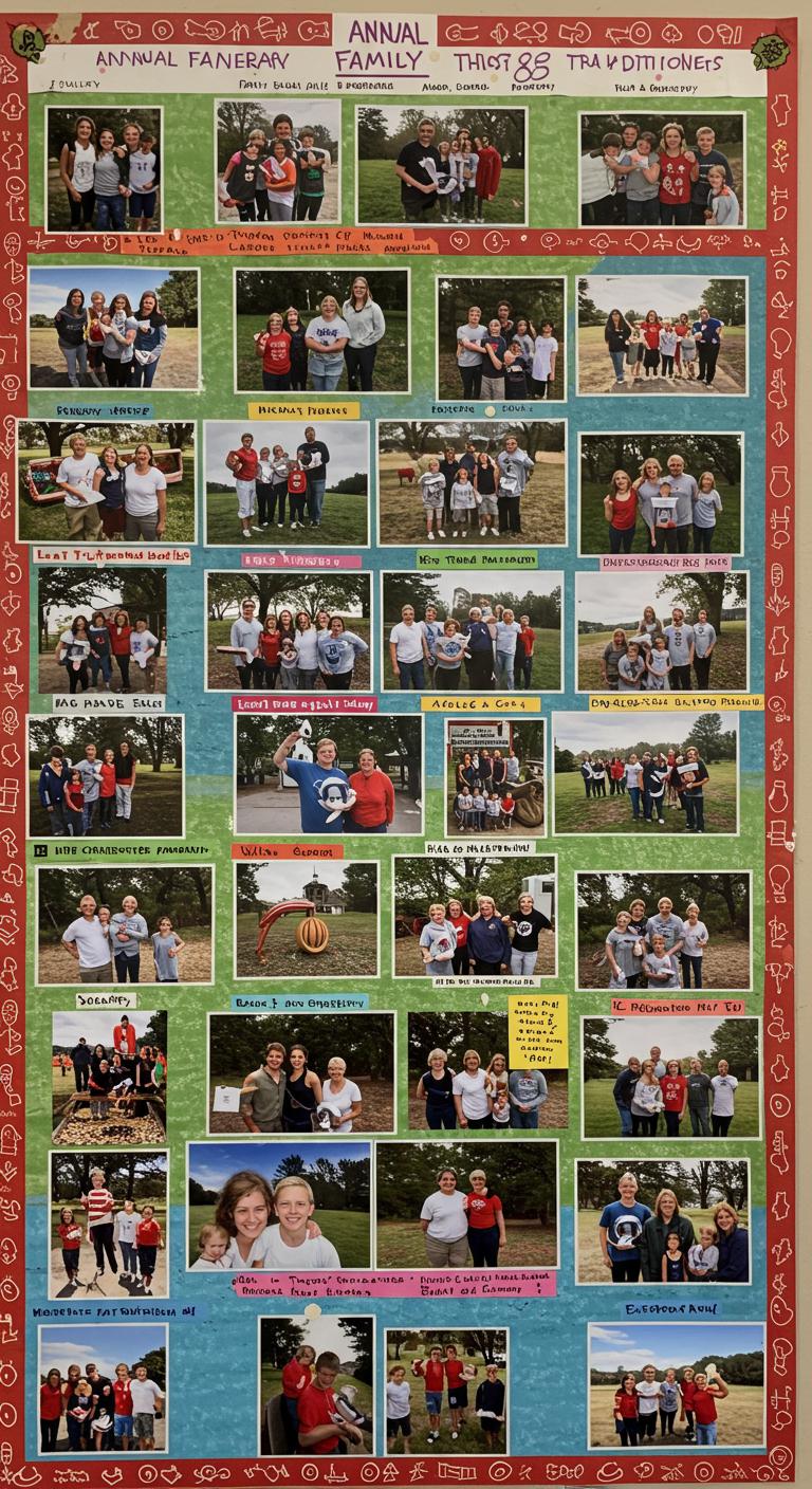 This family art piece serves as a visual storytelling of cherished moments and family traditions.