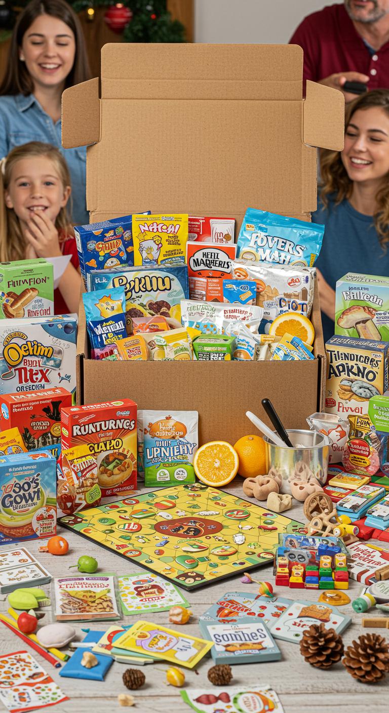 Imagine the laughter and friendly competition that fills your living room as your family gathers around a thoughtfully curated game night basket. Include board game recommendations like “Codenames” and “Ticket to Ride,” alongside fun family trivia games that spark lively conversations. This basket not only entertains but also strengthens your family bond, creating memories that last long after the games are over.