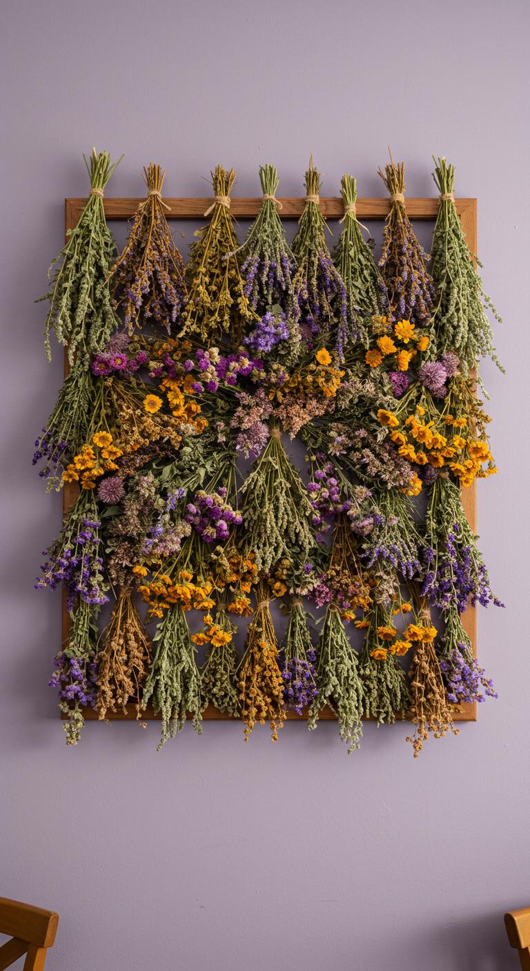Transform your walls into a herbal haven with dried herbs and flowers. This simple project involves gathering herbs like sage and lavender. You can hang them in a rustic frame or simply tie bundles with twine and hang them directly.