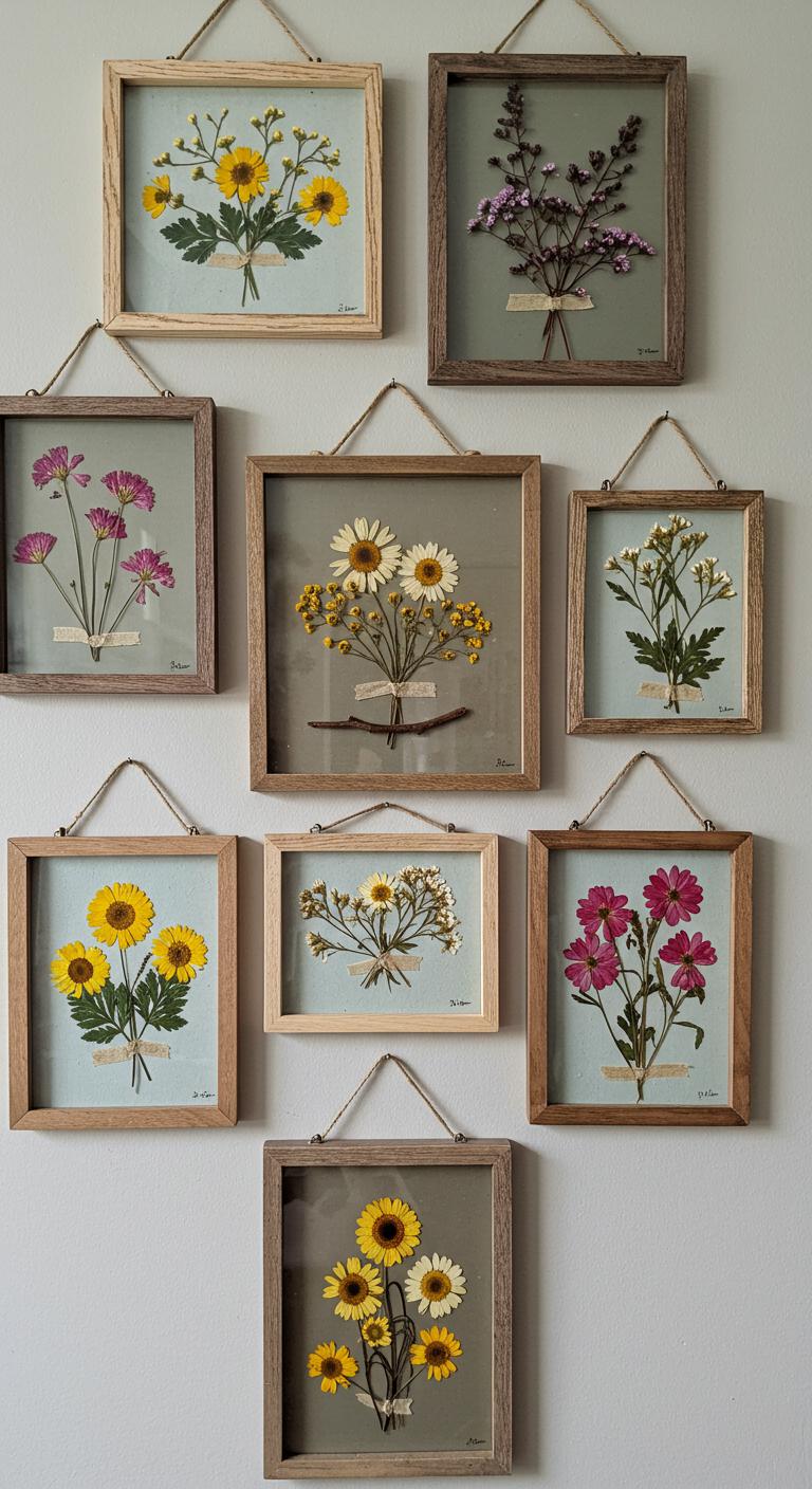 Nature-inspired wall art brings the outside in. This is an easy, budget-friendly way to express your love for nature. Start by pressing wildflowers or leaves.