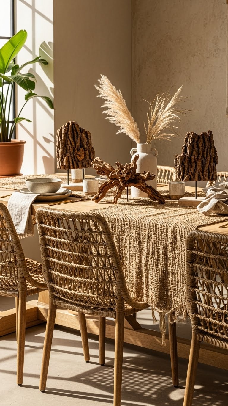 Bring the outdoors inside with textures like rattan and stone. They add an organic touch. Start with a rattan basket. Find one at a flea market for $15. Place it on your shelf. It holds items neatly. Add a jute rug under your bed. Cut a larger one to fit. Use a sharp knife for clean edges. This is quick DIY. Focus on walls. Hang a stone tile as art. Glue samples together from hardware stores. They cost pennies. Layer these elements. Put a woven mat on your table. You can make one from rope at home. Twist and knot it simply. These textures soften rooms. Try them in living areas. Add bark-inspired decor. Use tree branches in vases. Gather them for free. Arrange with what you have. The result feels fresh. Keep it budget-friendly. Shop second-hand for pieces. Update one spot at a time. You’ll see the change. Make it personal. (Word count: 200)