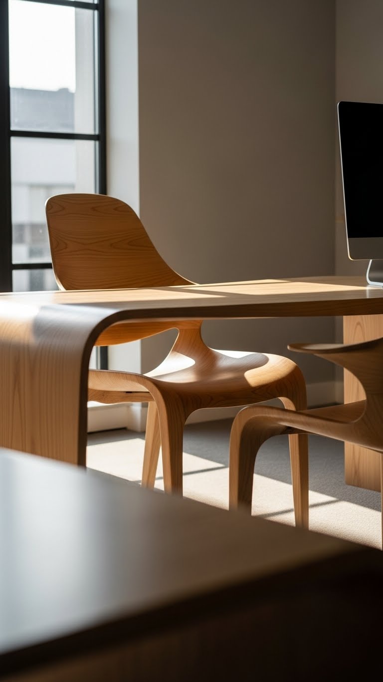 Smooth, curved wood pieces soften your space. Choose a small wooden stool. Look for sales online under $20. Place it by your bed. It adds flow instantly. DIY a simple curve. Sand an old board into shape. Use sandpaper you own. This takes little effort. Focus on edges. Replace sharp shelves with rounded ones. Find wood scraps locally. Attach with basic tools. These shapes counter stark designs. Put them in work areas. Add a curved lamp base. Repurpose an old one with paint. It costs nothing extra. Layer with other items. Set books on the stool. It creates a cozy nook. Keep actions simple. Shop thrift stores for pieces. Update gradually. You’ll feel the difference. Make it practical. Use the furniture daily. This builds a welcoming home. Try one piece first. (Word count: 200)