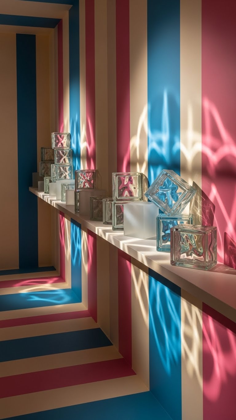 Stripes and blocks bring surprise. Start with a rug. Find striped ones cheap. Lay it down. It adds fun. DIY blocks. Cut glass from bottles. Arrange on shelves. Use glue sticks. This is creative. Focus on ambiguity. Place in corners. These reflect moods. Try in offices. Add striped pillows. Stack them simply. Layer with lights. The mix intrigues. Keep it simple. Use household items. Change one thing. Make spaces engaging. (Word count: 200)