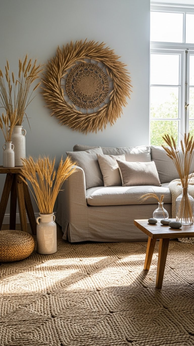 Jute and similar items are eco-friendly. Pick a rug. Buy one for $10. Place it in rooms. It feels natural. DIY weaves. Braid ropes at home. Hang as art. This is thrifty. Focus on organics. Use in floors. These tie to palettes. Try in entries. Add wheat decor. Make from paper. Layer with plants. The combination grounds. Keep actions cheap. Source locally. Update slowly. Make your home green. (Word count: 200)