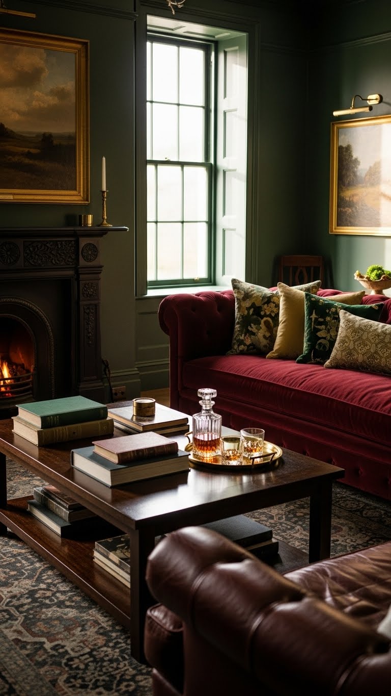 Colors like oxblood and green ground decor. Start with pillows. Get them for $6. Place on couches. They evoke fall. DIY shades. Paint jars green. Use brushes you own. This is quick. Focus on staples. Use in winters. These hues comfort. Try in dens. Add oxblood rugs. Lay them down. Layer with wood. The combination soothes. Keep it cheap. Find at sales. Change one hue. Make rooms nostalgic. (Word count: 200)