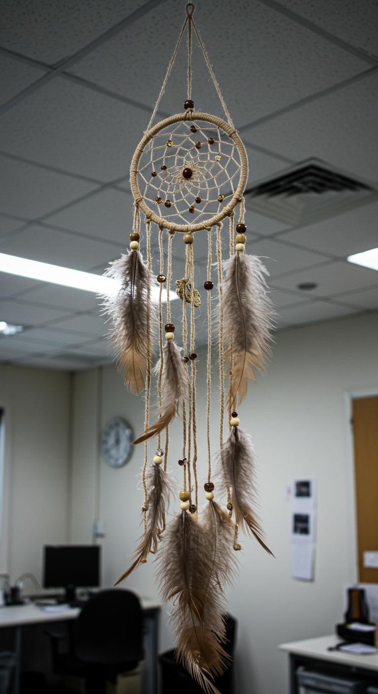 Incorporate a dream catcher to add an ethereal element. Place it overhead, either in your workspace or above a cozy reading nook. You can purchase one or create your own. Look for craft materials at local stores to customize it in colors and themes that match your office. This piece beautifies the area and symbolizes protection from negativity while adding to the magical ambiance you desire.