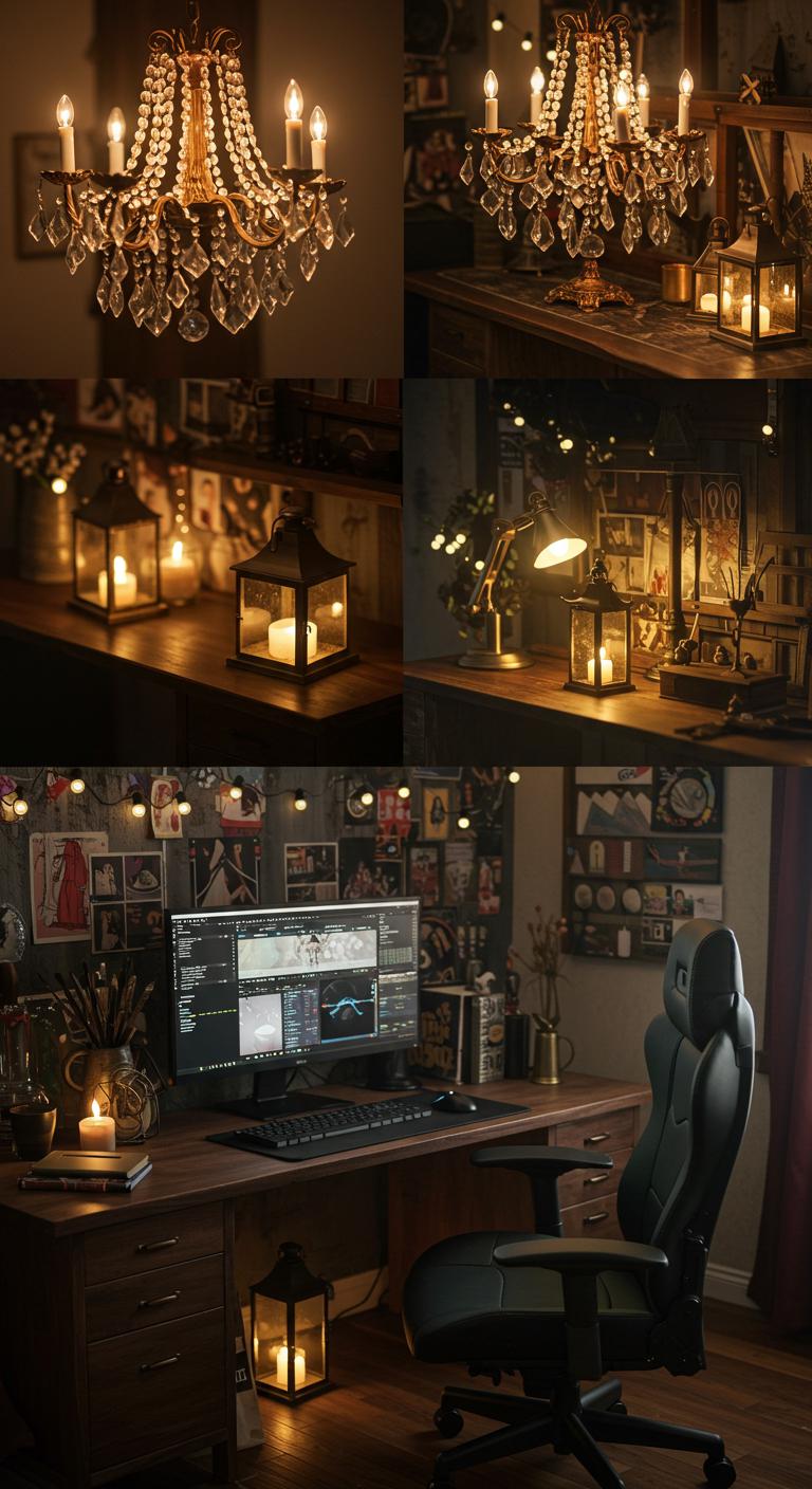 Lighting plays a significant role in setting the atmosphere. Use warm-toned bulbs or decorative lamps to create an enchanting environment. Consider fairy lights for an ethereal touch or vintage lamps for a classy look. You can find inexpensive options at local stores or online. Use lighting to highlight artwork and other decor items. This small change can significantly impact the mood of your office space.