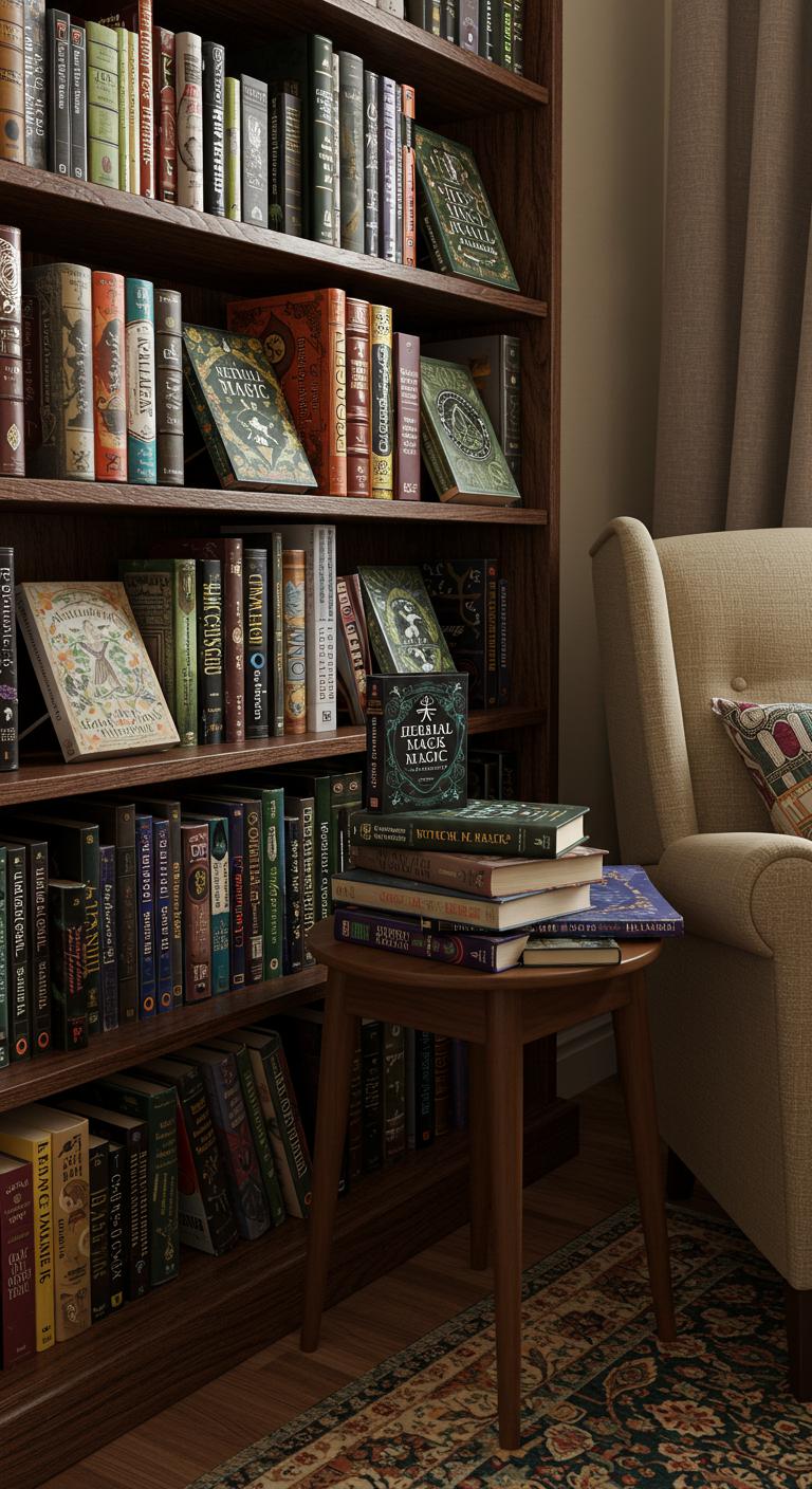 A collection of witchy books is both a decor statement and a valuable resource. Curate a range of titles covering herbal remedies, magical practices, and witch lore. Browse thrift stores or online sales for inexpensive finds. Use a unique shelf or repurpose an old ladder as a display for your collection. Mix in some decorative elements like crystals or candle holders to enhance the aesthetic. This creates a very inviting reading space, perfect for inspiration.