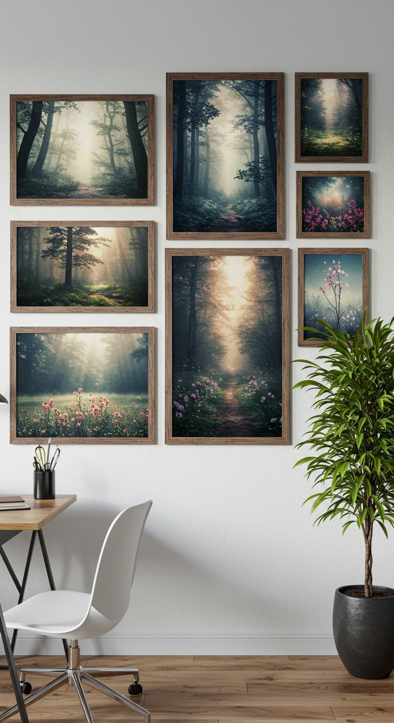 Nature prints can bring a sense of calm and connection to the earth. Consider images of enchanted landscapes, forests, or flowers. Use online platforms for affordable downloadable prints. Once printed, frame them using simple frames for a polished look. Arrange them in a gallery wall style or one striking focal point to create a stunning visual element. This stimulates creativity while making you feel grounded in your space.