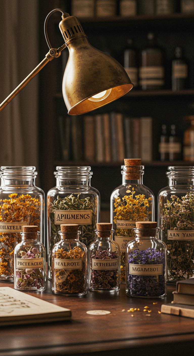Add vintage apothecary jars to your decor for both style and functionality. These can be found at thrift stores or online marketplaces. Use them to store herbs, potpourri, or other magical supplies you want to keep at hand. This not only organizes your space but also adds a whimsical element. Label each jar for a personal touch, and create a visually stunning arrangement on your desk or shelves.