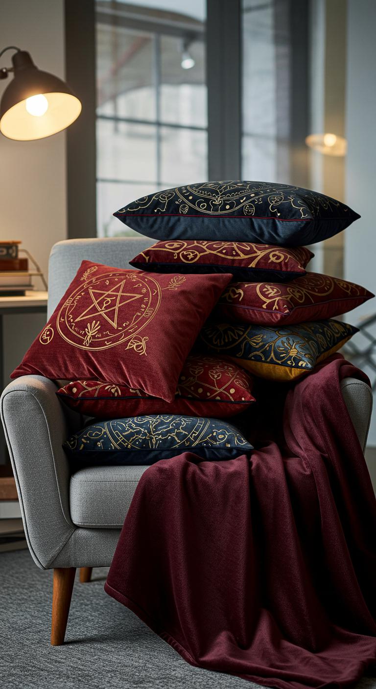 Textiles can make your witchy office more inviting. Look for throws, pillows, or curtains in rich colors or mystical designs. You can sew your own using fabric that resonates with you, or shop at local markets for budget-friendly pieces. These textiles can add warmth and comfort to your workspace. Drape a cozy blanket over your chair and decorate with patterned pillows. Choose materials that reflect your personality and style.