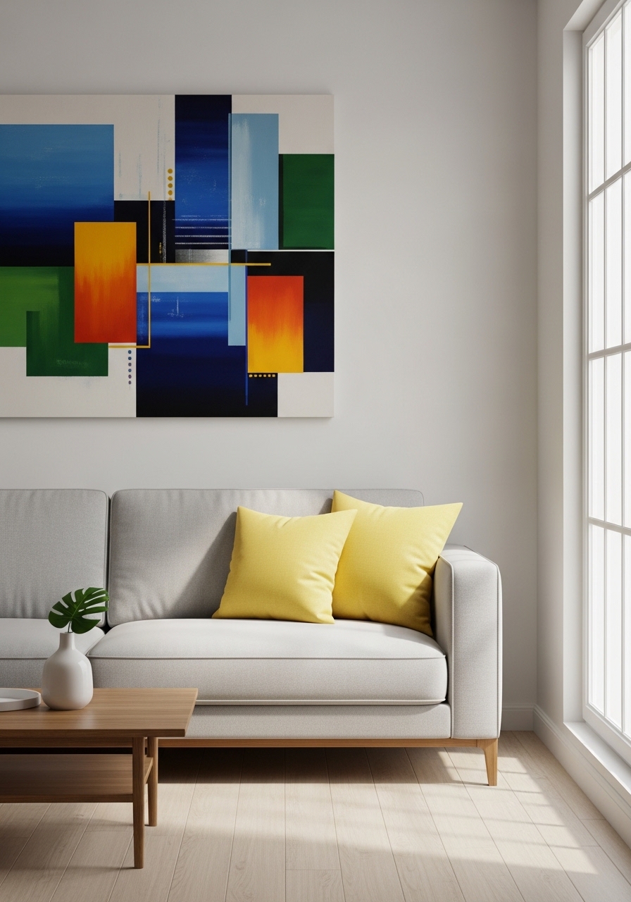 I kept a grey palette and added a small oak side table to introduce warmth. I used light grey accent pillow 20×20 ($22) and black-and-white framed print 16×20 ($29). The white wool throw 50×60 softens edges. Styling tip: leave breathing room on walls to keep the minimalist vibe. Mistake to avoid: cluttering surfaces with small colored items.