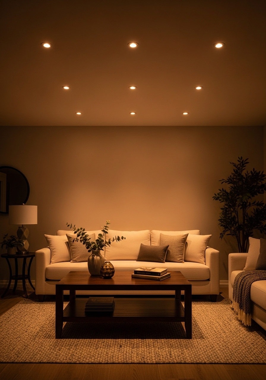 I swapped a harsh bulb for a warm-dimmable LED kit. I used the Philips Hue White Ambiance Starter Kit with a Hue Dimmer. Now the overhead drops to 2200K for late-night TV. The result: even light without glare. Styling tip: match the dim tone to lamp bulbs (around 2700K). Mistake to avoid: keeping overhead at max — it flattens the room.
