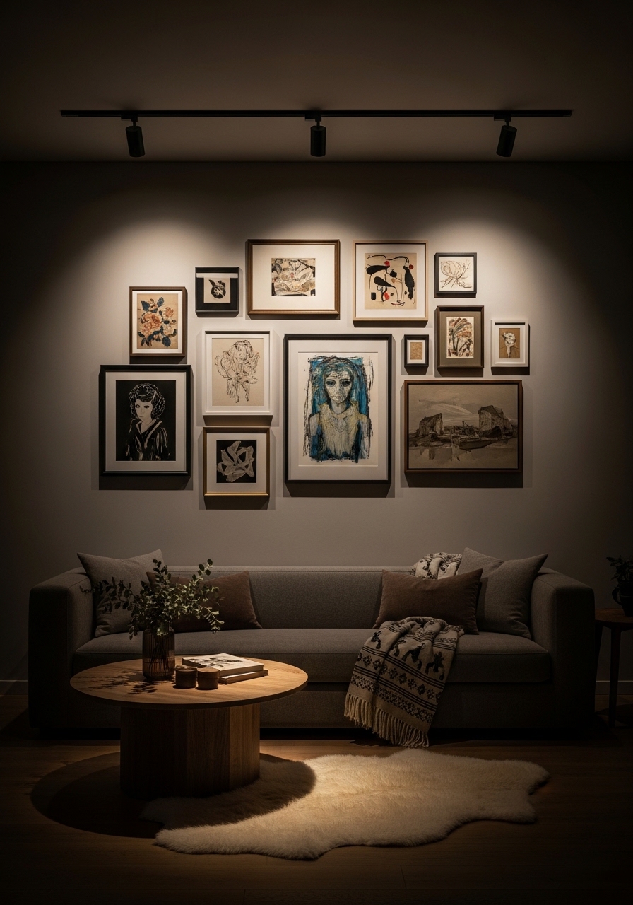 I installed a short run of track lighting to highlight my gallery wall and seating. I picked adjustable warm LED track heads. It reads purposeful and modern. Styling tip: aim heads at art and seating, not at windows. Mistake to avoid: using cool-white heads — they flatten colors.