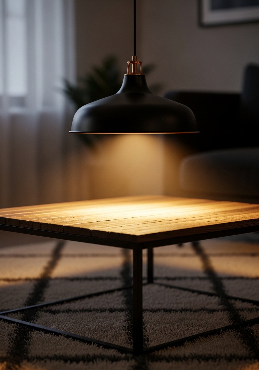 I hung a single pendant low over my coffee table. I used a 12-14" dome pendant. It creates a living-room "island" of light. Styling tip: keep it 28–32" above the table. Mistake to avoid: using clear bulbs — they glare.