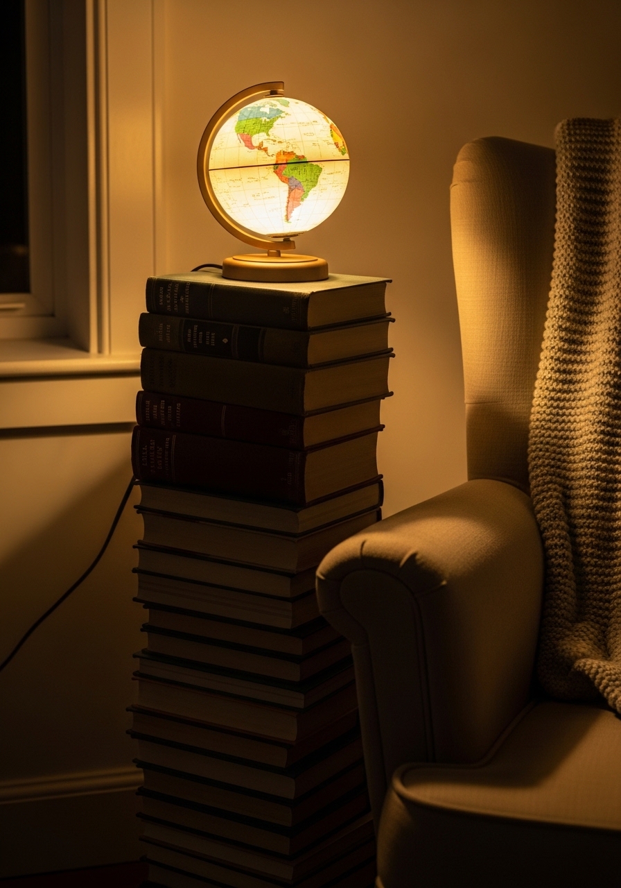 I added globe table lamps on low book stacks. I used opal glass globe lamps 8-10". They spread light without glare. Styling tip: use a 40W equivalent bulb for reading balance. Mistake to avoid: placing them behind you — causes shadows on pages.