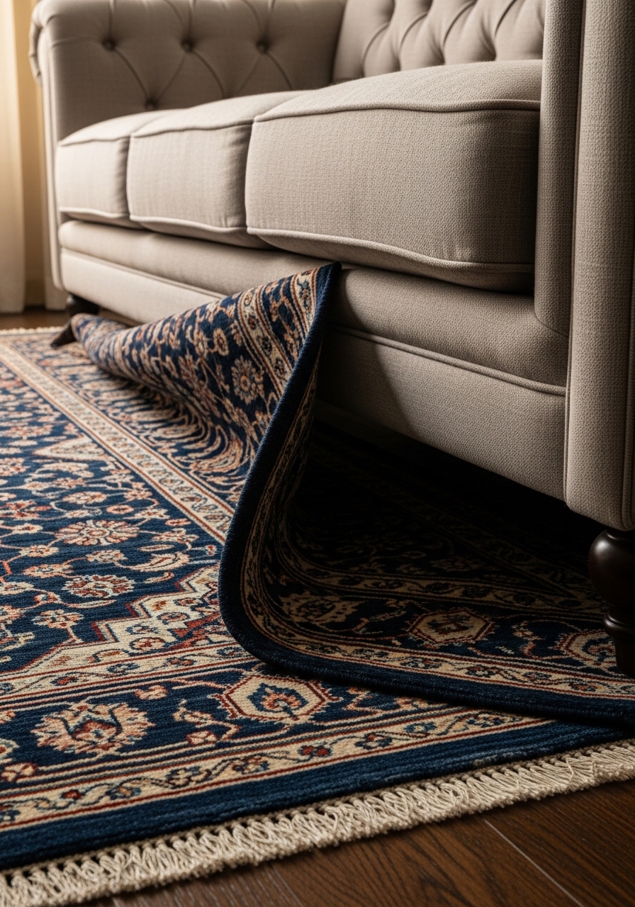Invest in a Rug Pad: Protects floors and keeps rugs flat. I use 8×10 rug pad felt rubber.