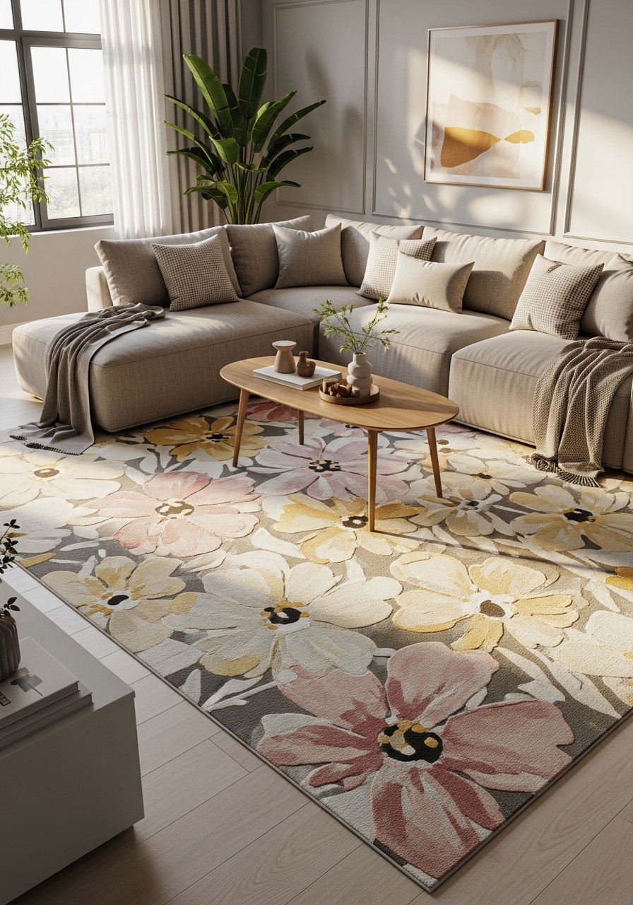 Large Floral Statement Rug for Soft Drama